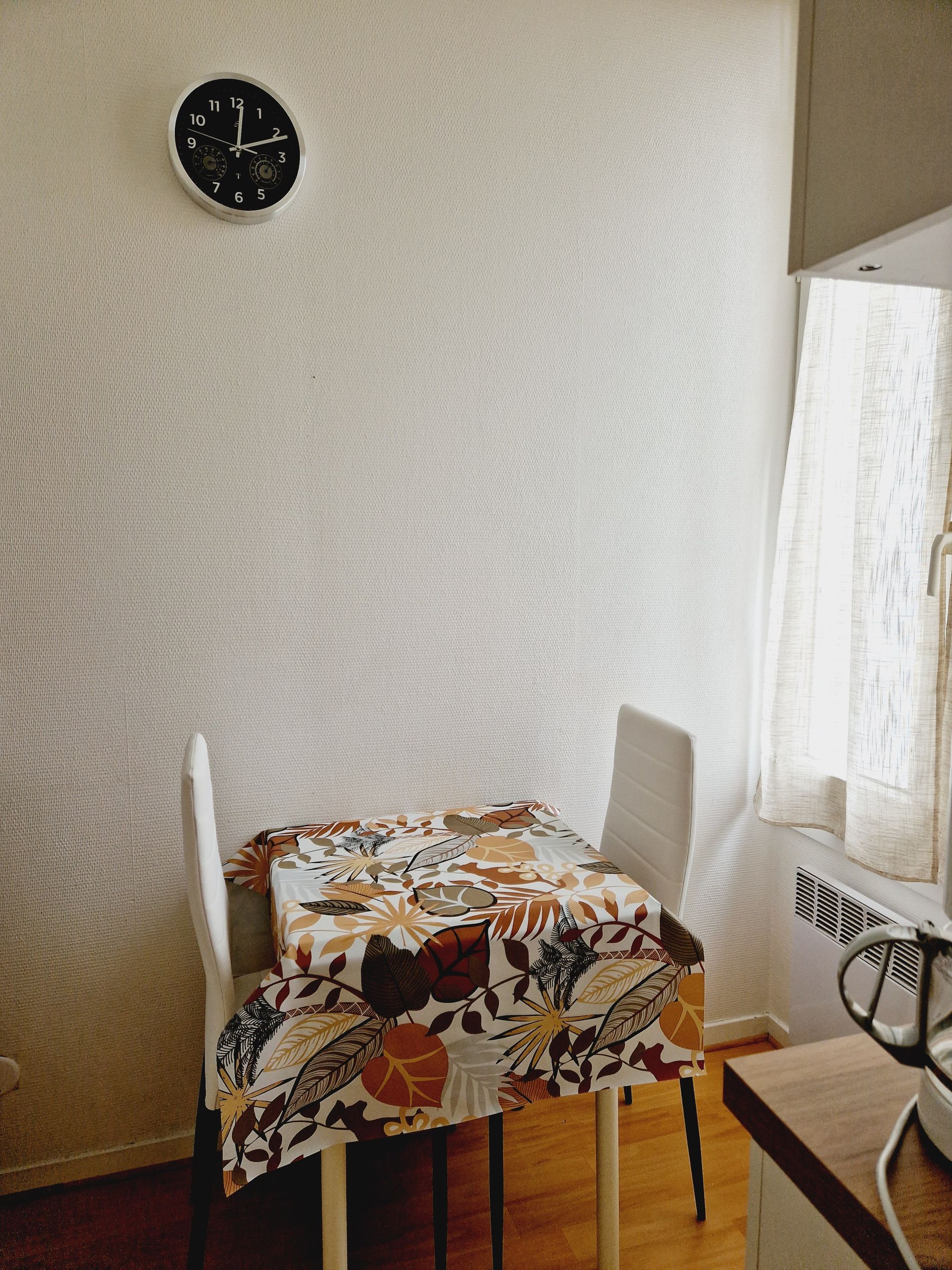 Il dispose d'une petite cuisine séparée équipée de divers rangements, 1 table et 2 chaises, 1 réfrigérateur, 1 plaque vitrocéramique, 1 micro-ondes multifonction, 1 cafetière électrique, 1 batteur, 1 mixer,1 batterie casserole et vaisselle, 1 fer à repasser et tout le nécessaire pour passer un excellent séjour.